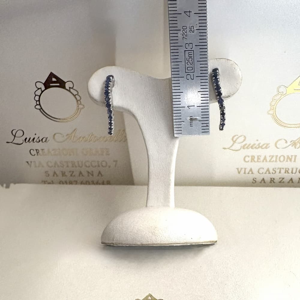 Creazioni Orafe di Luisa Antonelli クレアッツィオーニ・オラフェ・ディ・ルイーザ・アントネッリは、イタリア・リグーリア州に拠点をおく国内外に評価されているジュエリー工房です。Orecchino in Oro Bianco 750 mill. は、ブルーサファイアの輝きが美しい18Kホワイトゴールドのピアスです。シンプルでエレガントな洗練されたデザインで、さまざまなスタイルにマッチします。特別な日や普段使いにもおすすめです。