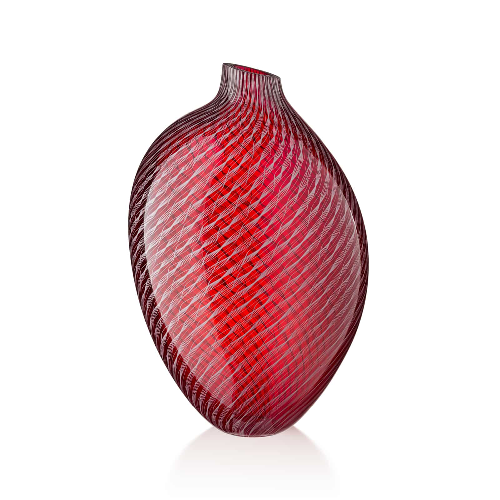 Salviati サルビアーティは、ベネツィア・ムラーノ島にあるアートガラスメーカーです。エレガントな形状の色彩豊かな製品をプロデュースしています。こちらは、ムラーノガラスの伝統的なzanfirico / filigrana(ザンフィリコ / フィリグリー)技法を現代風に表現した手吹きガラスの花瓶です。3種類からお選びいただけます。